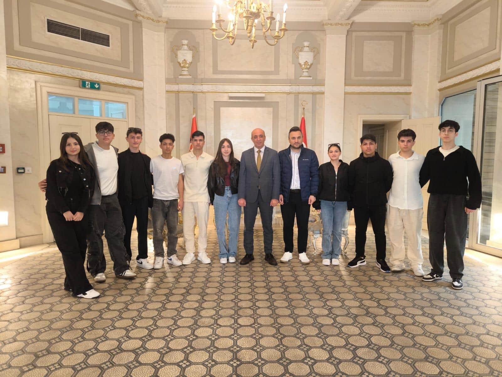 Ziyaret sırasında öğrencilerle sohbet eden ve onların sorularını yanıtlayan Eğitim Müşaviri Yıldırım, misafirlere çeşitli ikramlarda da bulundu.