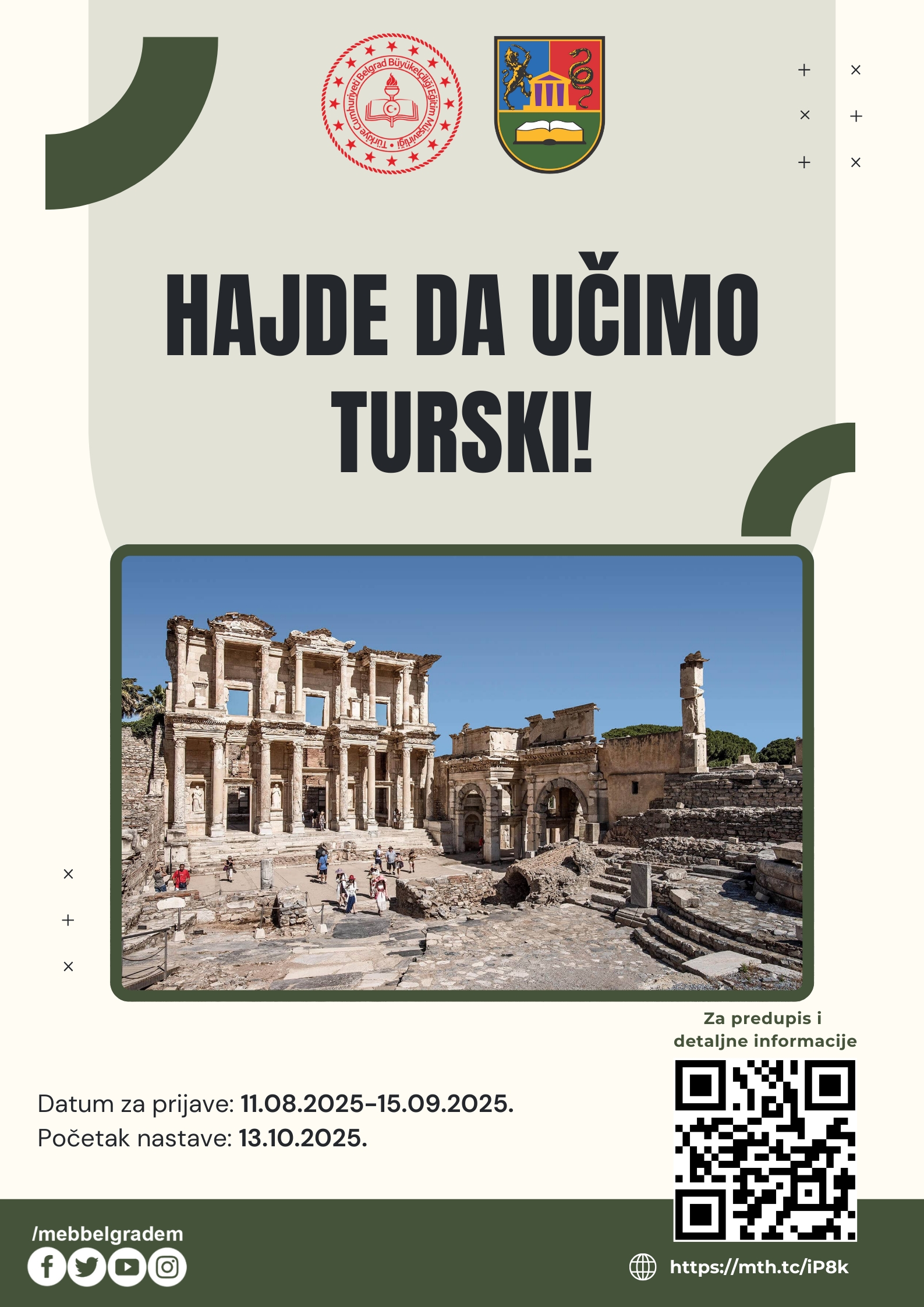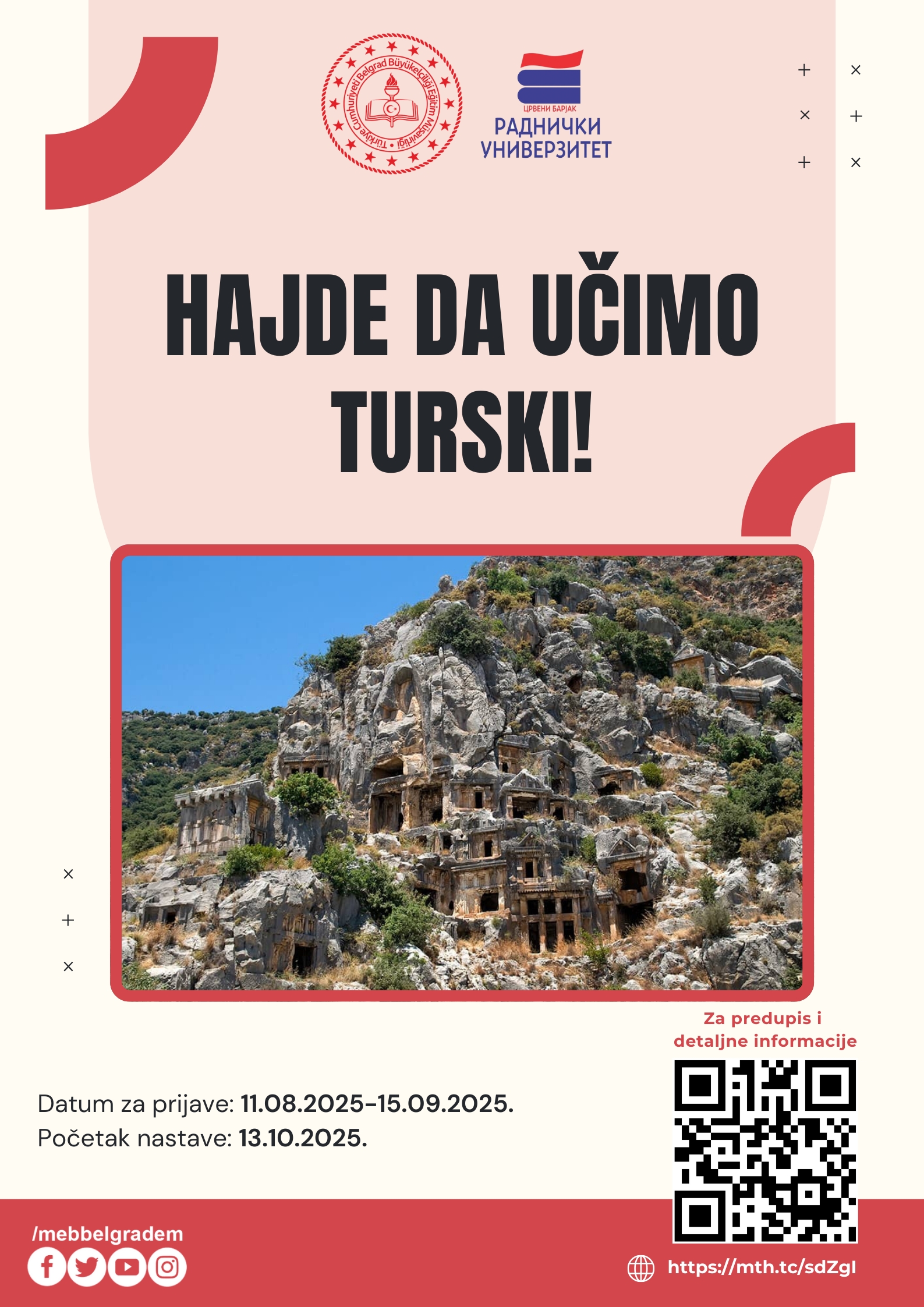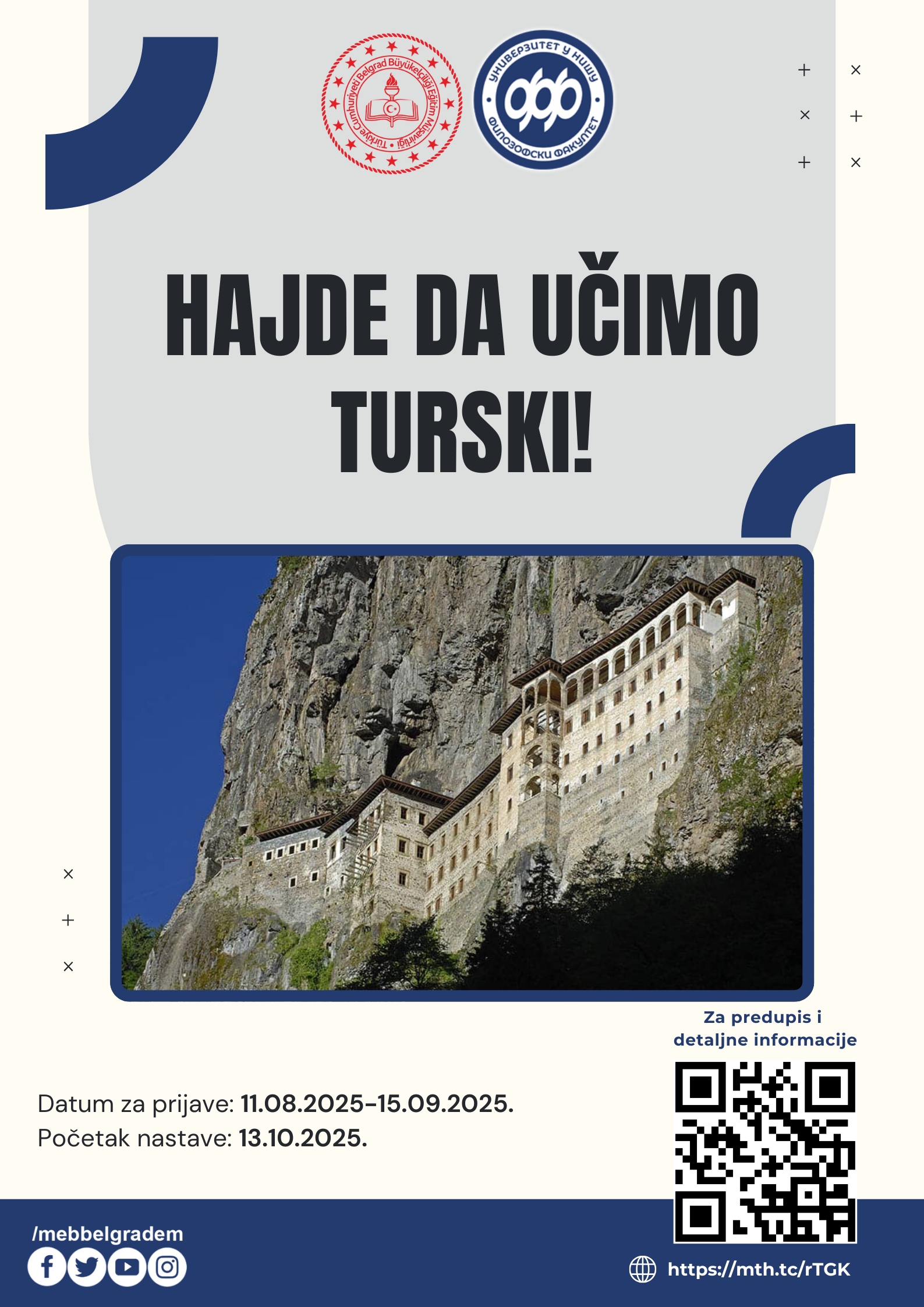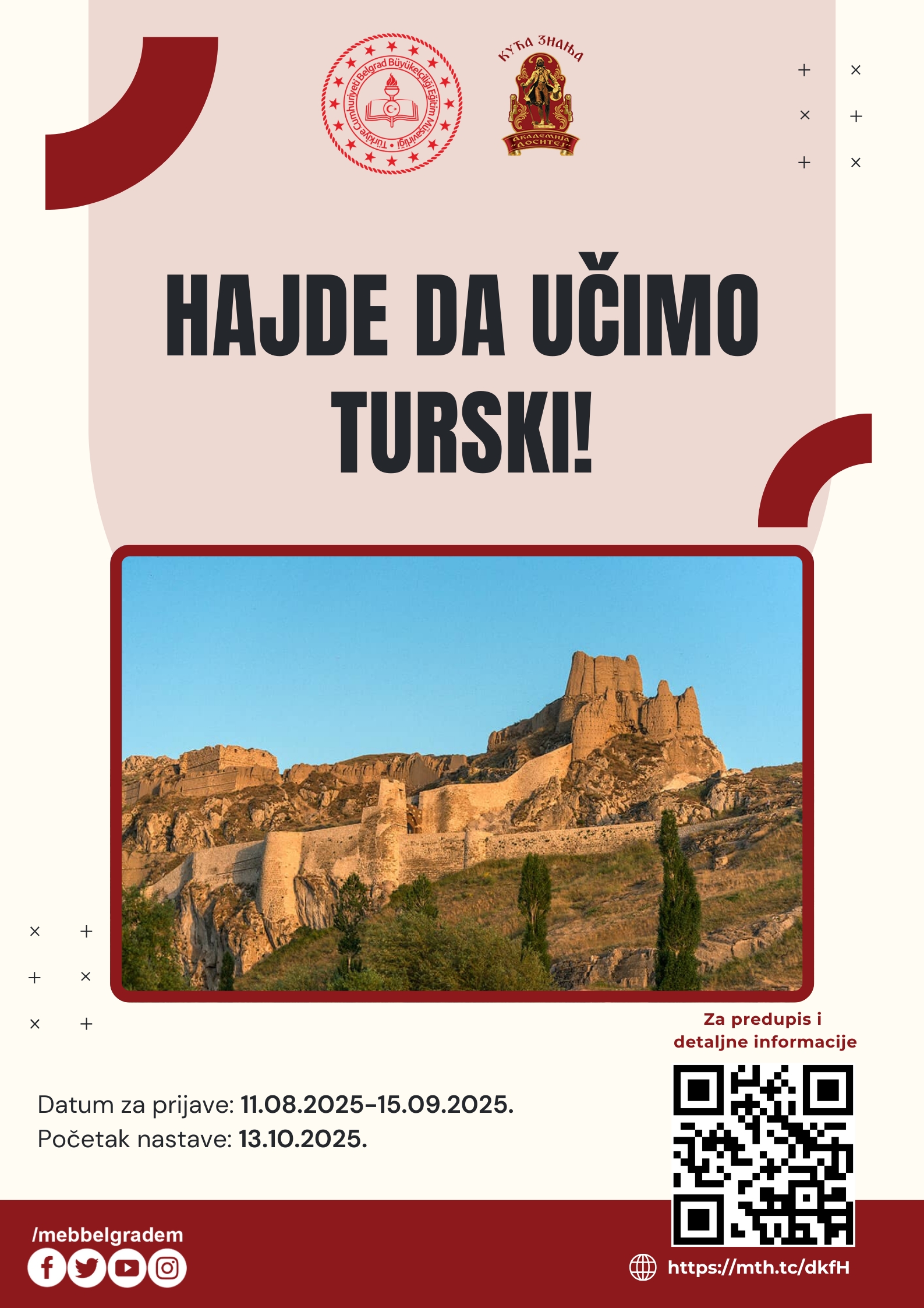 Za upis na kurs turskog jezika u organizaciji Kancelarije za obrazovanje Ambasade Republike Turske u Beogradu i Dositey Akademije: https://mth.tc/dkfH