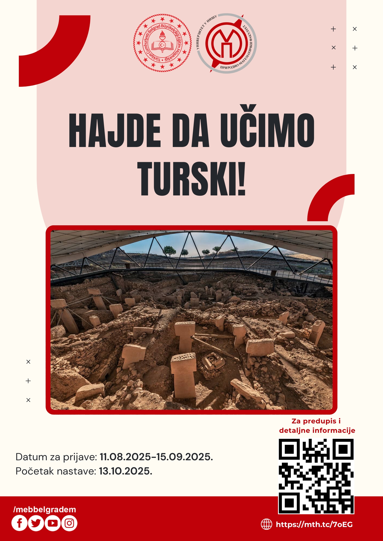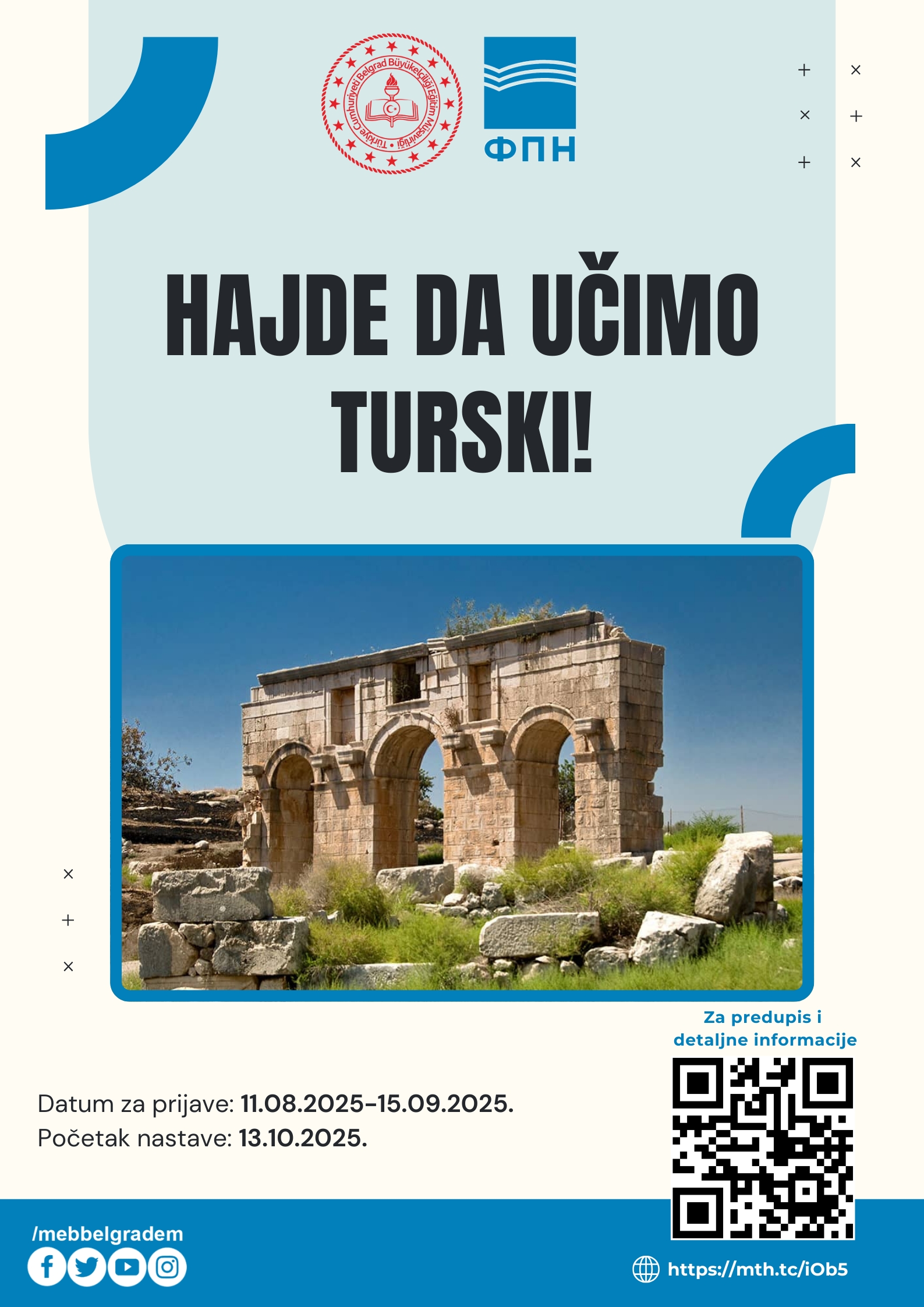 Za upis na kurs turskog jezika u organizaciji Kancelarije za obrazovanje Ambasade Republike Turske u Beogradu i Prirodno-matematičkim fakultetom Univerziteta u Nišu: https://mth.tc/7oEG