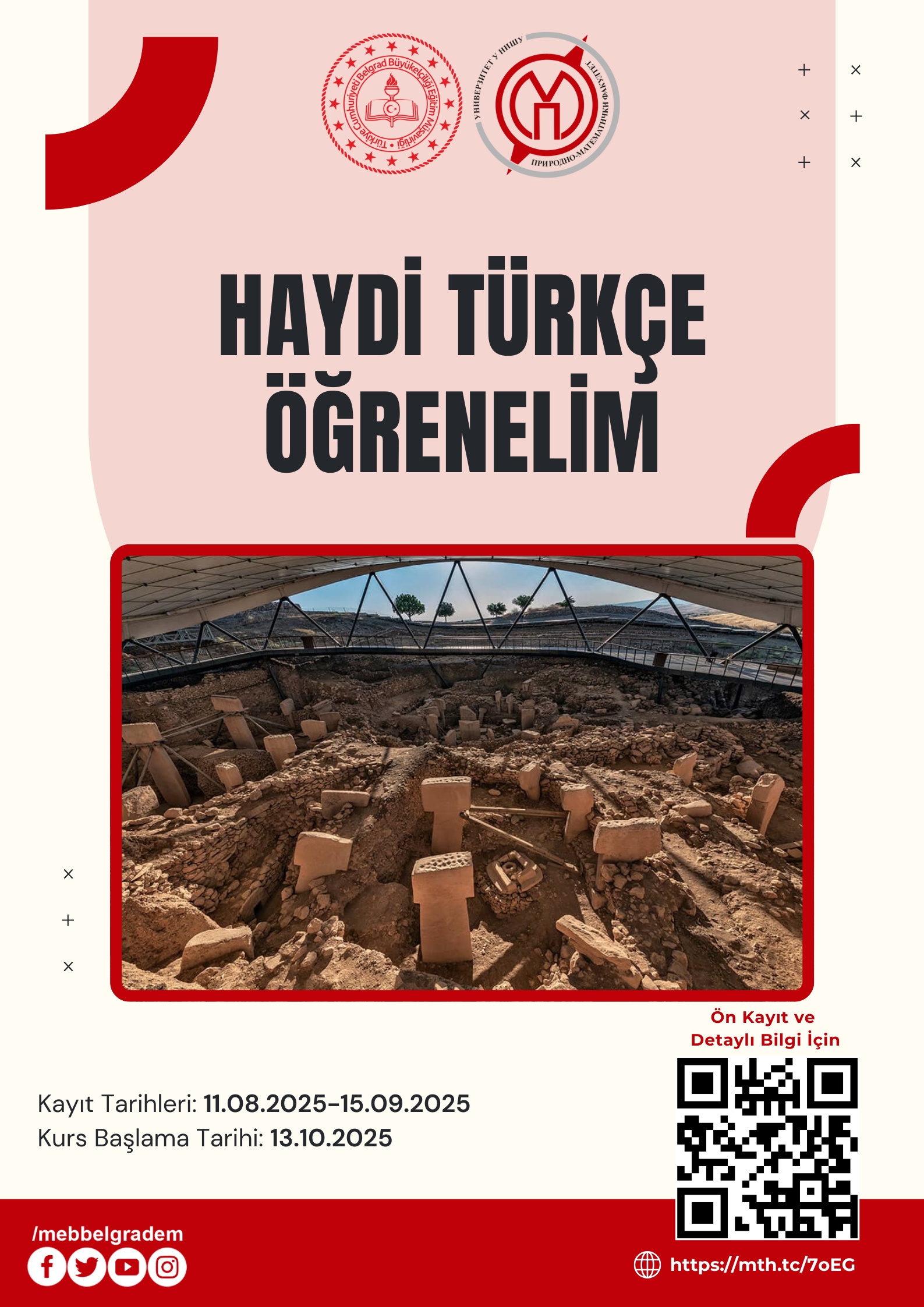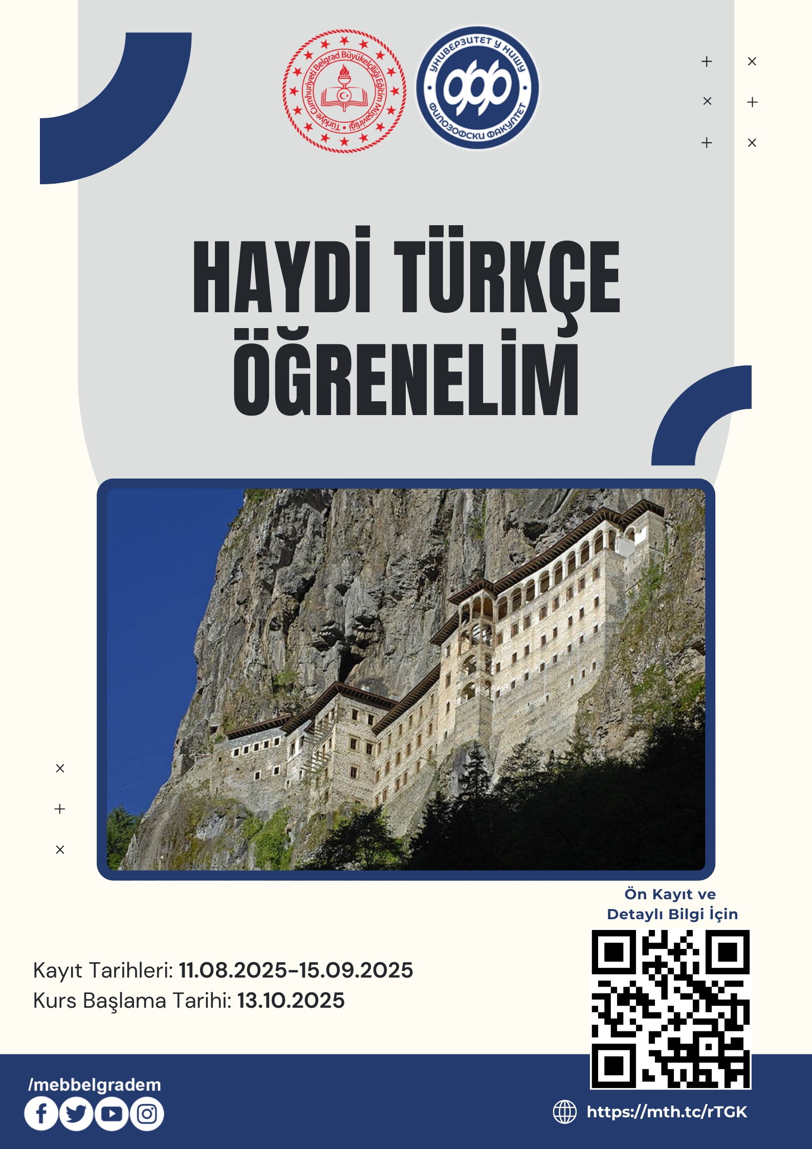 Türkiye Cumhuriyeti Belgrad Büyükelçiliği Eğitim Müşavirliği ile Niş Üniversitesi Fen-Matematik Fakültesi iş birliğinde gerçekleştirilen Türkçe kursu kaydı için : https://mth.tc/7oEG