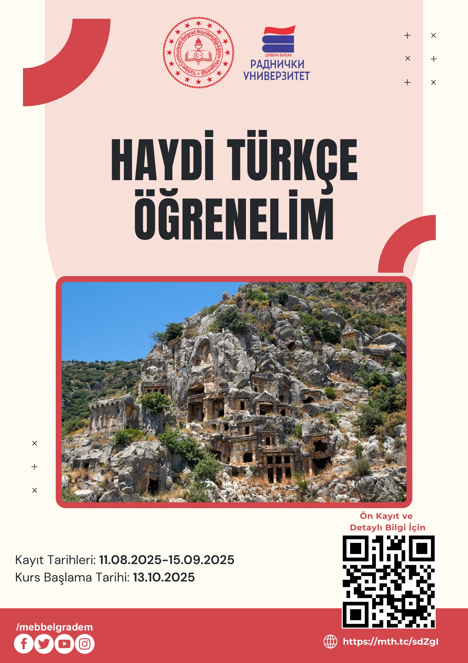 Türkiye Cumhuriyeti Belgrad Büyükelçiliği Eğitim Müşavirliği ile Kragujevac İşçi Üniversitesi iş birliğinde gerçekleştirilen Türkçe kursu kaydı için : https://mth.tc/sdZgI